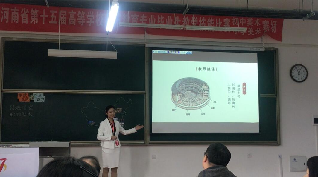 281名选手在14个赛场进行比赛,分为初中组、小学组16个学科以及学前教育本、专科2个小组。比赛内容包含说课、答辩、才艺展示和专业技能展示等环节,比赛竞争激烈,信阳师范公司best365英国体育在线参赛选手苏红在初中美术组十一人中,抽签说课题目为《传统民居的魅力》,在说课过程与答辩环节中,选手充满自信,稳定发挥,并在才艺展示金粉画环节赢得全场掌声,获得一等奖。