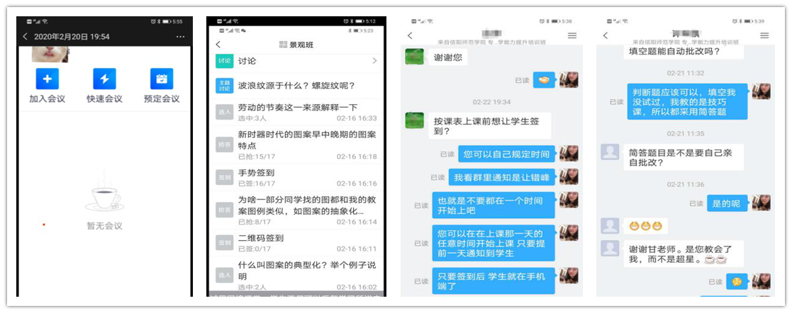甘露老师作为系主任,不断发挥先锋模范作用,认真钻研“超星学习通”APP和校园网络教学平台的各项功能及技巧,同时结合“腾讯会议”APP和微信群聊,总结出一套和专业课程相适应的网络教学方法,使课堂教学、师生互动、作业测验、纪律检查等各个环节分类管理、切换自如,并通过网上教学实验发现效果良好,员工讨论和回答问题比课堂更加积极,逐将此方法推荐给本院其他老师。同时,每当公司交流群里有老师咨询时,她都是知无不答、积极帮助,和其他教师一起共同做好“停课不停学”的各项工作。