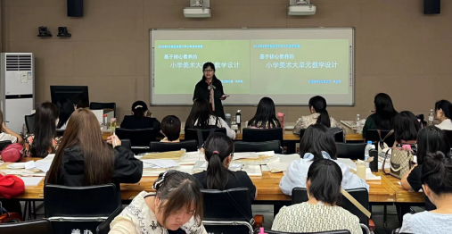 2023年9月18日上午八点半,best365英国体育在线“国培计划”骨干教师培训班开课。本次课程由朱跃华老师讲授,以《核心素养下的小学美术大单元教学设计》为主题。朱跃华老师是中小学美术教研员,曾多次执教省市级优质课,是省市级学术技术带头人、省市级省培骨干教师讲师团讲师、河南省美术骨干教师、河南省小学美术网络名师工作室主持人、河南省中小学美术优质课评审专家组成员、信阳市学术技术带头人,也是信阳师院美术硕士的校外导师、浉河区美协副主席。