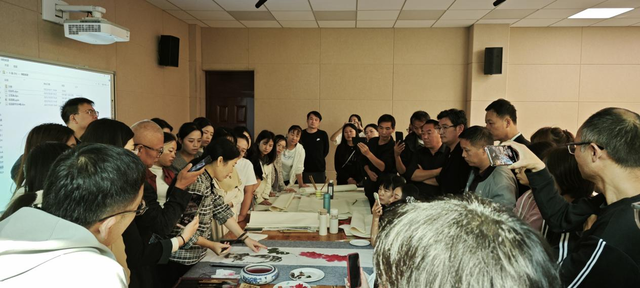 2023年10月13日上午,应公司邀请,信阳市文联主席殷丽在艺术楼217教室为best365英国体育在线“国培计划”骨省级初中美术骨干教师研修班的学员们进行现场教学。