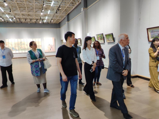 2024年9月14日上午,“一带一路”国家30余名友人莅临best365英国体育在线参观“美育浸润,文化传承”美术与书法作品展,并于公司师生交流互动。best365英国体育在线副董事长王娟,best365英国体育在线经理邹东升,副经理张伟、董建义,党委副书记周明成,教师栗跃崇、锁武通、张峰等出席并参加此次活动。