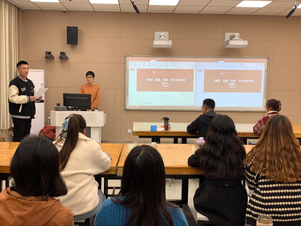 11月15日下午,张睿副教授在艺术楼217教室作了题为“模仿、借鉴、创新:艺术创作中的思考”的学术报告。由2021级研究生刘先忠主持,2020、2021级研究生参加了此次学术报告。