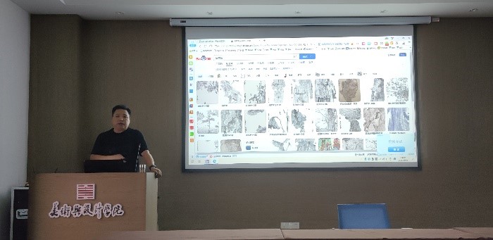 此次活动分为两个环节,张伟老师担任学术主持。首先,播放了南京艺术公司美术公司经理,博士生导师周京新教授在线分享的学术讲座录播《笔墨等于几》。周京新教授的学术讲座共分作水墨画创作的写性,工性,天性,我性等部分。“写性”就是追求书写性,那是中国画语言的特质。“工性”就是追求技呈法度,落笔成器。“天性”就是要循得自然生成之道,师法造化。“我性”就是要表露自己的真性情,凸显个性。重点强调了笔墨是技术与精神合成的东西,精神性的东西再怎么高妙,一定是与技术性的东西融为一体、相得益彰的。笔墨应该体现我们的文化精神,更是我们对待自然的一种科学态度。中间阐述了传统技法对中国画发展产生的影响以及古今中外绘画艺术的对比,对水墨画的特点进行了总结,最后回答了几位老师在抽象绘画、中西方绘画学习融合等方面提出的问题,对水墨画的特点进行了总结。