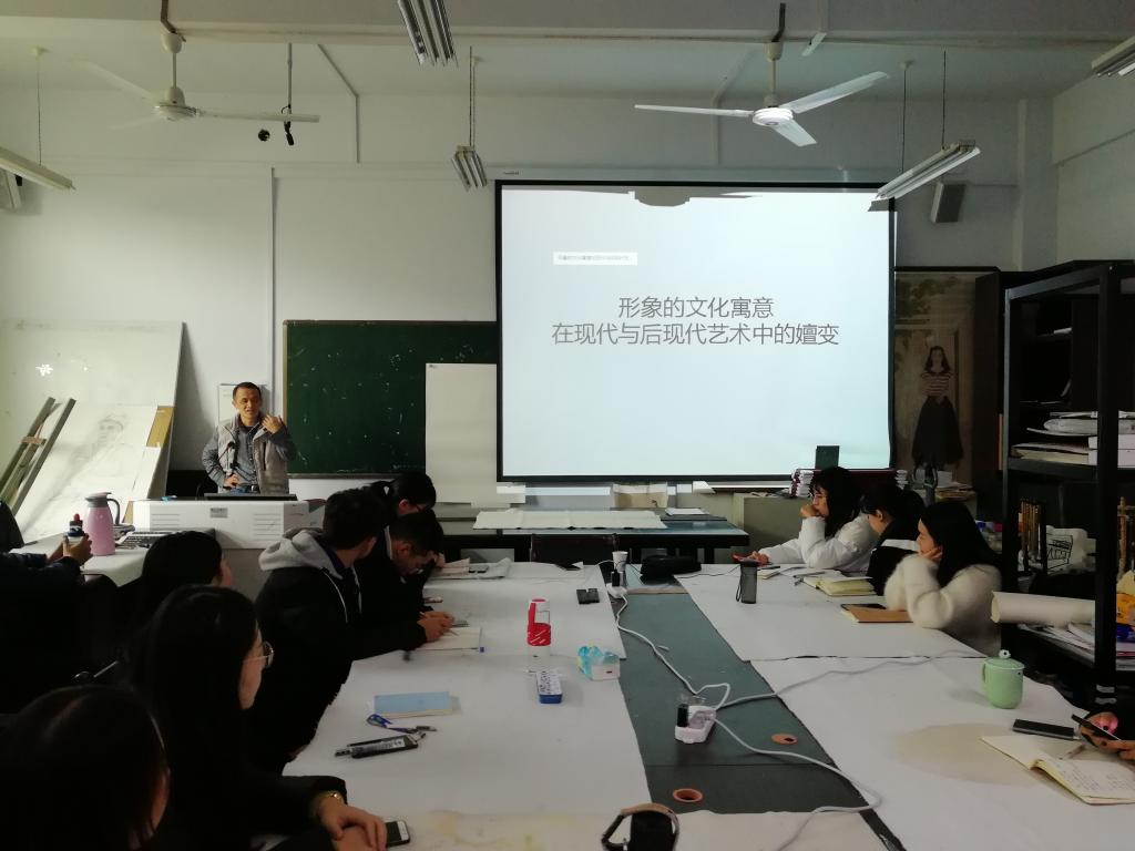 11月18日下午,公司许东兵博士在艺术楼研究生教室作了题为“形象的文化寓意在现代与后现代艺术中的嬗变”的专题学术讲座,全体研究生参加此次讲座并积极讨论。