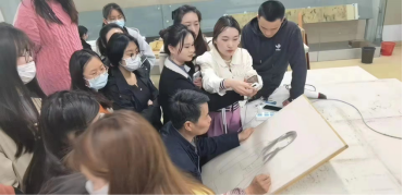 此次示范,现场气氛活跃,增强了同学们对工笔人物染色技法的了解,帮助同学解决了一些在创作中处理人物面部、头发等方面的问题,充分调动了大家学习工笔人物画的积极性。