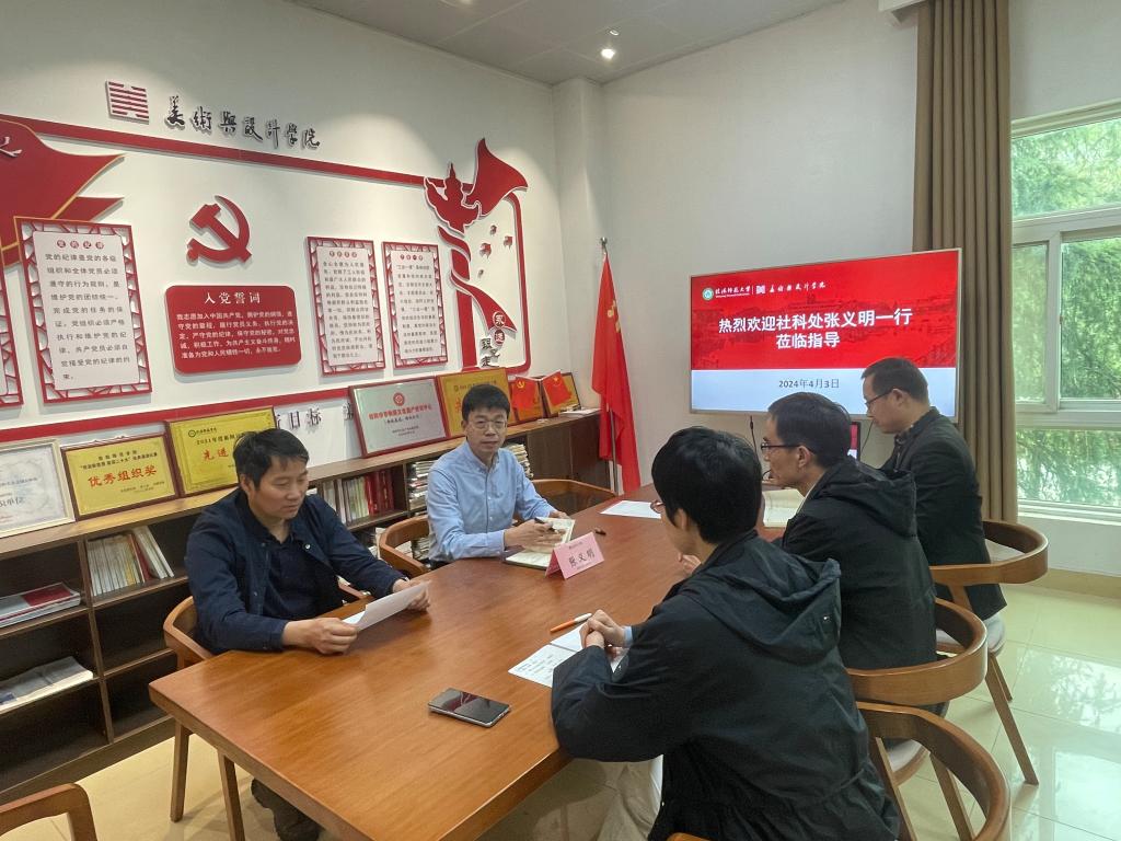 4月3日上午,社会科学处副处长张义明莅临best365英国体育在线指导国家社科基金艺术学项目,公司经理邹东升、副经理董建义及部分教师参加会议。