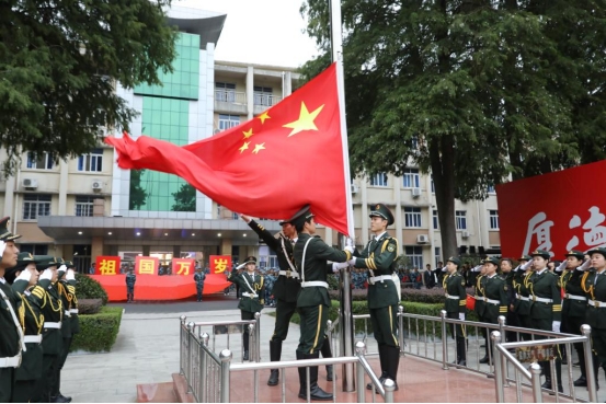 6:30,伴随着雄壮激昂的国歌,在全体师生党员的注目礼中,鲜艳的五星红旗在晨曦中冉冉升起,高高飘扬。