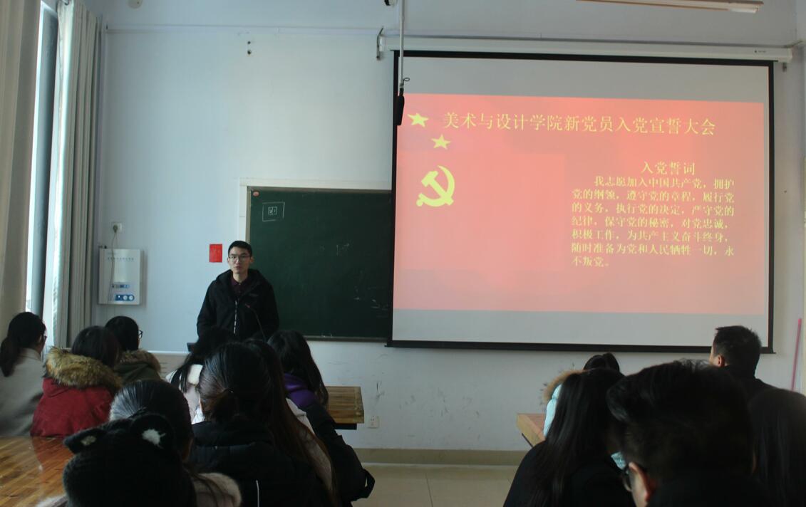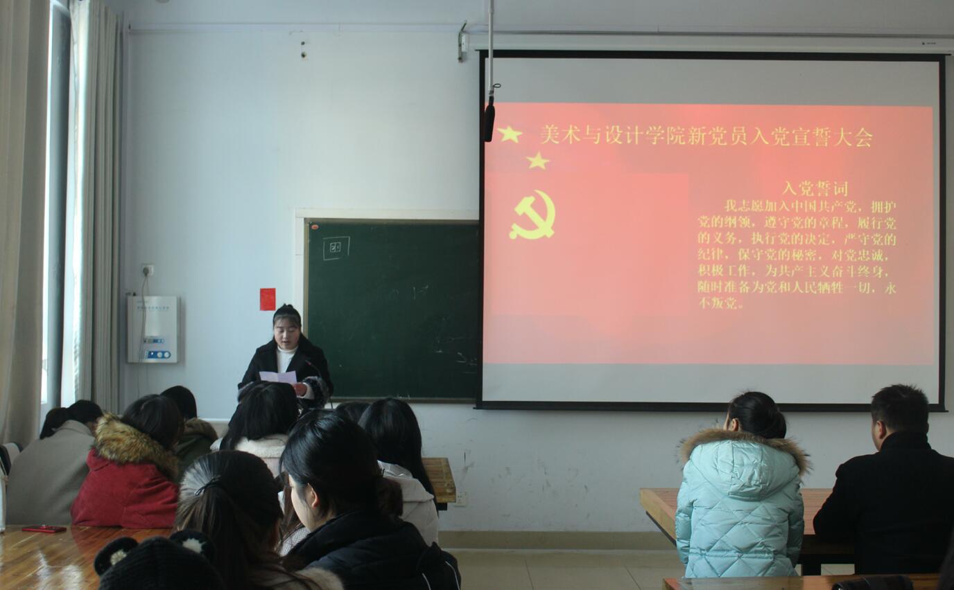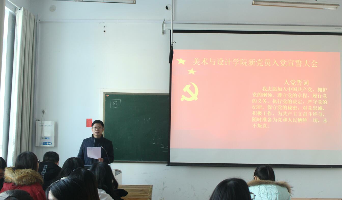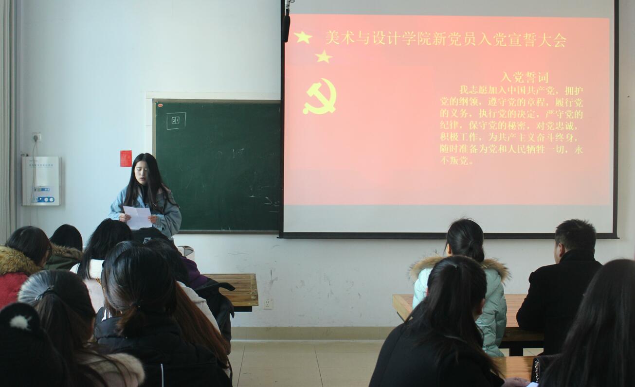 1月12日,best365英国体育在线于艺术楼306室成功举行2017年下半年年新党员入党宣誓仪式,公司党委副书记杨轶中,美术学第一员工党支部书记马玉环,艺术设计第二员工党支部书记杨冰冰,辅导员郑波出席了本次仪式,此次发展的21名新党员与公司全体在校老党员、18名入党积极分子代表共同参加了此次宣誓仪式。大会由饶海虹主持。