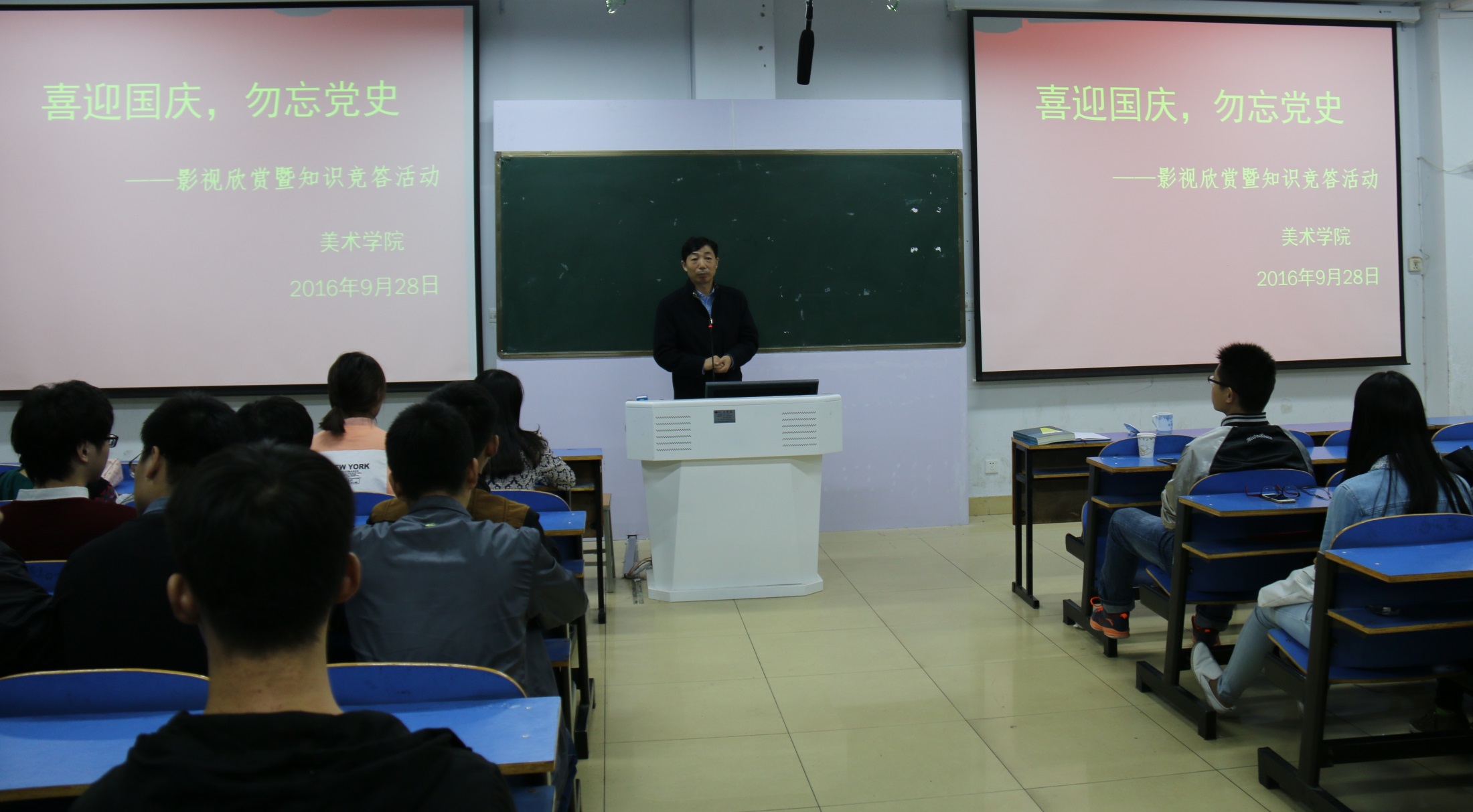 周子良首先为活动致辞。周子良以“四讲四有”为切入点,带领大家详细解读了党员的内涵。周子良强调,本次教育活动不仅仅是“两学一做”的一部分,也是开展员工党员教育活动的重要组成,为全面提升党员自我修养打下坚实基础。随后,施远组织大家观看了反映抗日战结束到建国前夕的历史题材影片《建国大业》。观影结束后,施远开展党史知识竞答活动。竞答活动以严谨的态度与活泼的方式相结合,师生共同温习了党的历史,回顾了峥嵘岁月。期间,同学们认真观影,积极参与竞答活动。