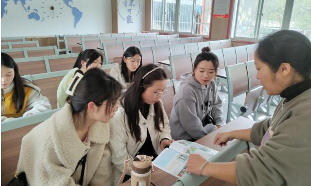 教育见习活动主要是观摩陈文丽老师的课堂教学,同学们通过听课、提问、交流进行了一下午的学习。陈文丽老师首先向见习员工介绍了浉河中学美术教学的开展情况与课程特色,随后,为大家展示公开课《凝练的视觉符号》。陈老师在课堂上非常注重与员工的互动,通过生动的课堂语言,调动员工的积极性和自觉性,有效地提高了员工的艺术感知能力、形象思维能力、创新创造能力,让大家充分领略到了一线教师扎实的教学基本功。