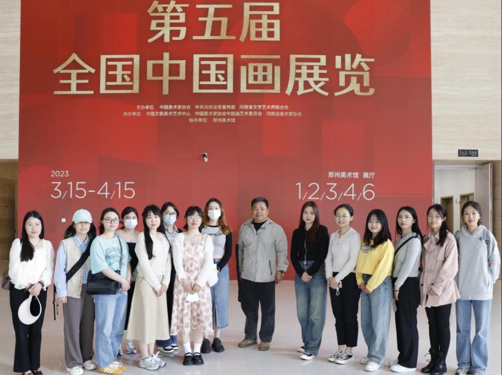 近日,”第五届全国中国画展览”在郑州美术馆开幕。为拓宽公司研究生的专业视野,丰富他们的绘画语言和技能,4月15日公司副经理、研究生导师张伟带领研究生前往郑州美术馆观览此次大展。