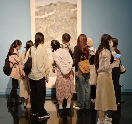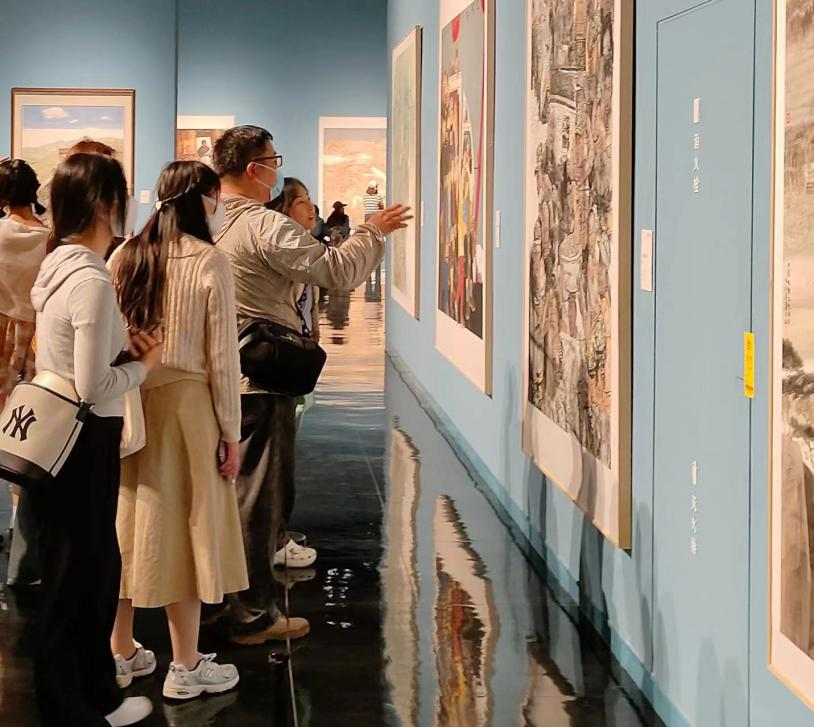 “全国中国画展览”是由中国美术家协会主办的中国画领域最高艺术水准的展览,每五年举办一次,是美术界的一项重要展事。本次参展作品共计340件,这些作品从内容形式、表现手法等方面展现画家们热爱生活,深入自然为时代讴歌。通过参观展览,帮助同学们开阔视野,汲取新的创作灵感,感受新时代下中国画的创作面貌和时代新风。在观展过程中,张伟老师带领同学们从画面的构图、色彩、造型、技法等方面细细品读作品,分析解读画面,希望同学们能从这些优秀作品中获得启发,从而应用到自己的创作中去。