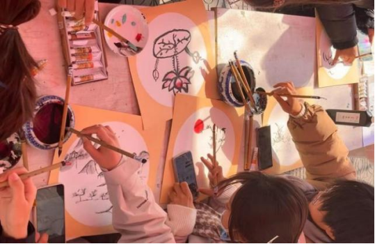 活动准备阶段,公司志愿者提前准备好了画笔、宣纸、颜料等绘画材料。尽管许多参加活动的同学对于国画创作及工具使用并不了解,但在志愿者的帮助与指导下也逐渐掌握了基础绘画技巧,纷纷投入到绘画的过程中。同学们绘画风格虽各有不同,但都表达出了对身边的山水草木、对生活的美好所充满的无限喜爱,作品中洋溢着积极向上、健康阳光的精神风貌!