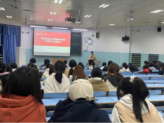 为进一步规范员工日常,改善员工宿舍生活环境,防范宿舍火电风险隐患,增强员工的安全意识,9月15日,best365英国体育在线在艺术楼召开员工宿舍安全管理相关制度专项学习主题班会。各新生班主任主持会议,2024级全体员工参加会议。