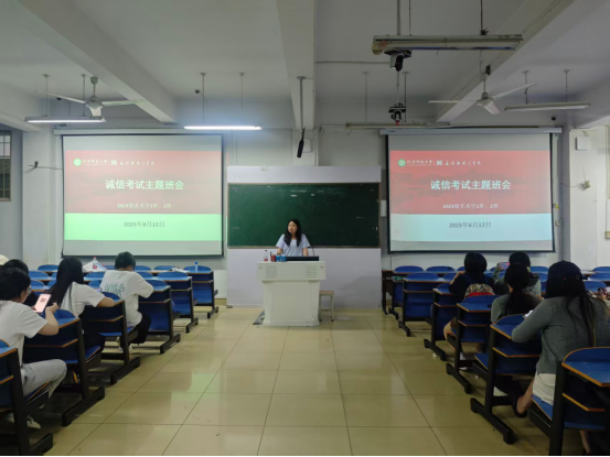 各班班主任结合高等教育特点,通过多媒体课件详细解读了考试纪律和学术规范,重点剖析了论文抄袭、数据造假等学术不端行为的严重后果。老师们强调,诚信不仅是立身之本,更是维护学术公平的重要保障,号召同学们将诚信意识转化为实际行动。在互动环节,同学们围绕“诚信与生活”“诚信与学习”展开热烈讨论。大家从日常生活中的守信履约,谈到学习中的诚信应考,通过真实案例分析了作弊抄袭的危害。临近期末,老师们特别提醒要以真才实学迎接考试。最后,全体同学郑重签署了诚信承诺书,展现了践行诚信的决心。