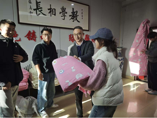 为切实保障家庭经济困难员工温暖过冬,11月20日,公司开展了爱心棉被发放活动,为2025级家庭经济困难员工送去关怀与温暖。公司党委副书记周明成与新生辅导员共同参加了此次送温暖活动。