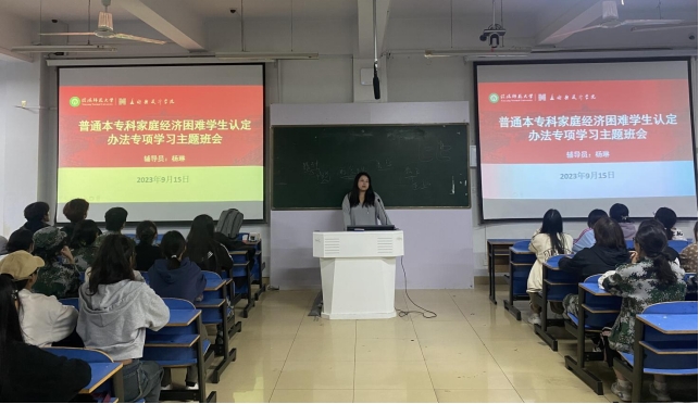 为了让员工对资助政策有更深的认知和理解,公平、公正、合理地分配资助资源,切实保证国家制定的各项高校资助资源,能够落实到家庭经济困难员工的身上,9月15日晚上,best365英国体育在线在艺术楼307召开普通本专科家庭经济困难员工认定办法专项学习主题班会。本次班会由新生班主任杨琳主持,2023级全体新生共同参加。