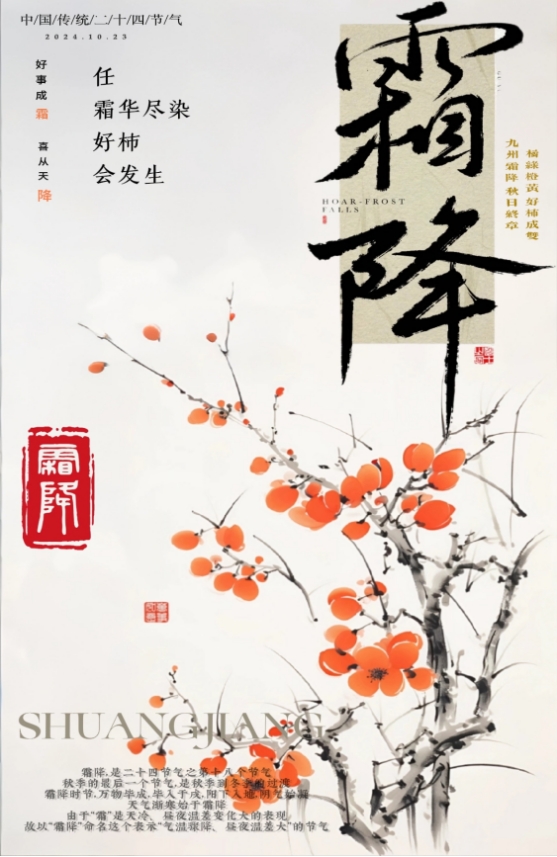 为激发同学们对霜降这一传统节气的深刻理解与创意表达,同时促进员工艺术素养与创新能力的提升。公司员工会文明督察队于10月19日至21日举办了“一夜知秋至,霜降感秋寒”海报设计活动。