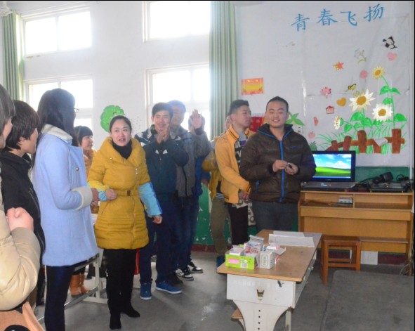 特殊教育公司里,志愿者们积极融入到这些孩子们中间,虽然不能读懂这里孩子们的手语,但他们的一举一动却能深深牵动每一位志愿者的心,孩子们在黑板上书写感谢的话,志愿者们也用文字的方式与他们进行交流并耐心向他们学习手语,当得知他们喜欢画画后,美术公司的志愿者们便发挥专业优势,教孩子们基本的绘画技巧,而这里的孩子也热情地拿出他们在信阳百花园的表演视频与志愿者们分享。随后,志愿者们将带来的手工面具、剪纸等送给这里的员工,大家拿着志愿者们送来的礼物露出了孩提般的幸福笑容。