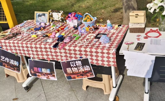 现场,同学们制作的手工、书画等作品,直观展现了审美素养与动手能力,成为创造力、专注力的“可视化名片”。以物易物不仅实现物品流转,更搭建起同学间、员工与部门间的联系桥梁。