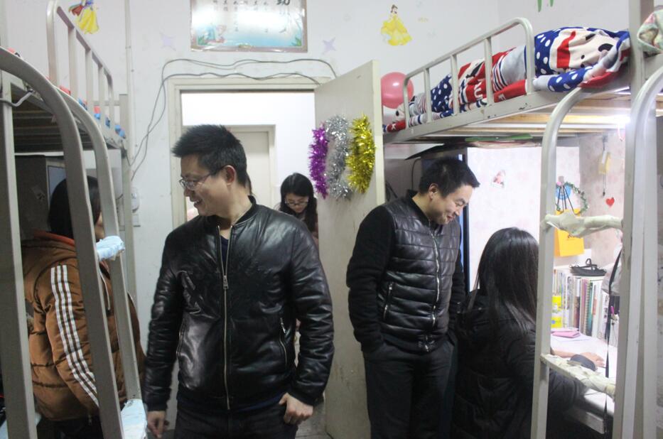 公司老师分成三组,在三个年级同时展开检查,全面的了解员工日常生活情况。在走访过程中,张锐表达了对员工最真挚的问候,谈到了员工宿舍的安全卫生问题,着重强调要注意宿舍通风并保持洁净,不能因为保暖而门窗紧闭,尤其不能藏匿违规电器。饶海虹询问员工的生活情况,提醒员工降温多加衣谨防着凉,并对员工期末备考给予了鼓励,指出平时可以利用空余时间进行复习。在走访期间饶海虹和郑波询问了员工元旦放假回家的情况,提醒员工回家期间要注意人身安全,可以选择和同学结伴而行。郑波就员工的体能素质等方面提出建议,今后可以多参加户外锻炼来提高自身素质,并询问了体育器材的发放情况。公司学子恭敬礼貌、态度良好,宿舍较为整洁,安全意识较强。
