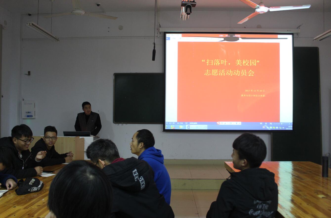 11月20日晚,best365英国体育在线于艺术楼308室召开“扫落叶,美校园”志愿活动动员大会。辅导员郑波以及14、15、16、17级各班班委参加会议。本次会议由郑波主持。