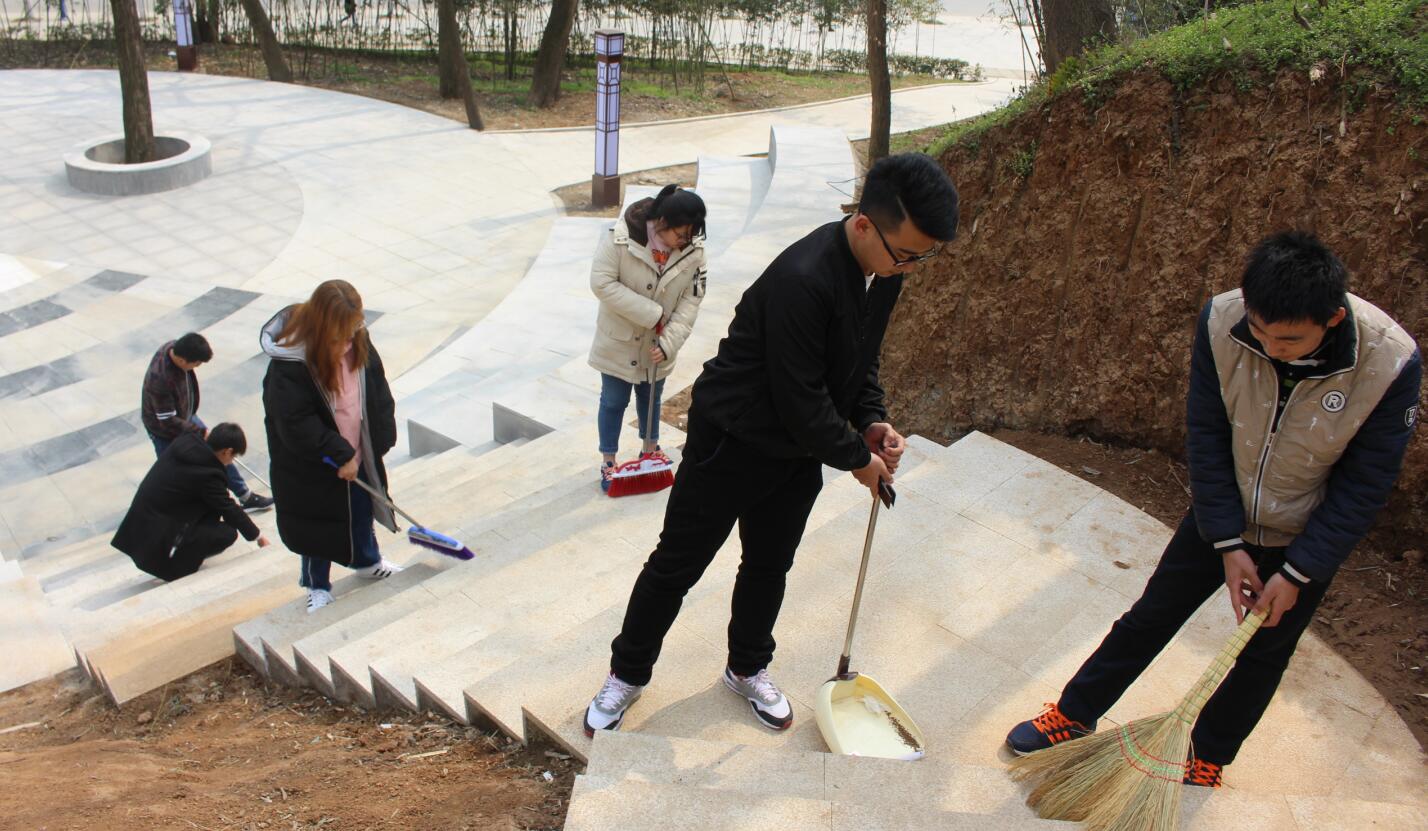 活动伊始,公司负责人给志愿者们做出明确工作安排,把志愿者分成若干小组,之后,大家手拿劳动工具在钟秀岭广场的各个地方进行打扫。每个小组成员配合默契,不怕脏、不怕累,有的用扫帚清扫、有的捡拾藏在花丛中的垃圾、清理纸屑和楼梯上的树叶。同时,同学们重点打扫了隐蔽的卫生死角。一个多小时过去了,同学们用简单的工具将校园打扫得干干净净。