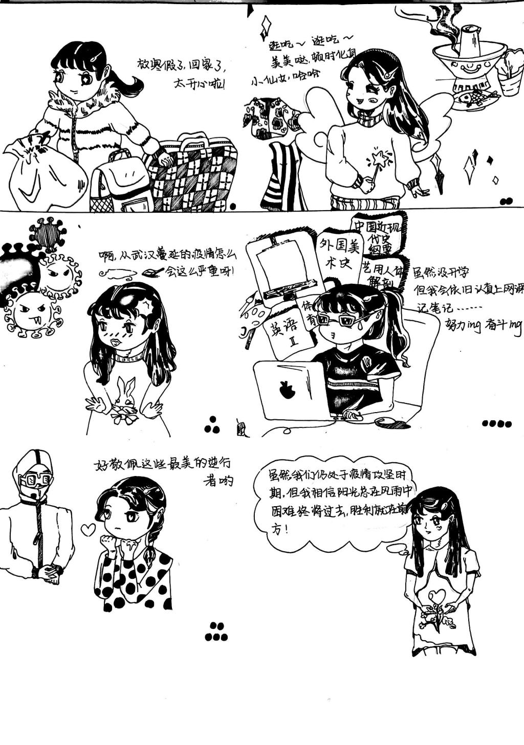 本次“心”漫画的成功举办,一方面有助于树立当代老员工健康的心理素质,提高审美素养,另一方面也增强老员工们勇敢面对疫情的决心和斗志,为校园精神文明建设打下夯实的基础。
