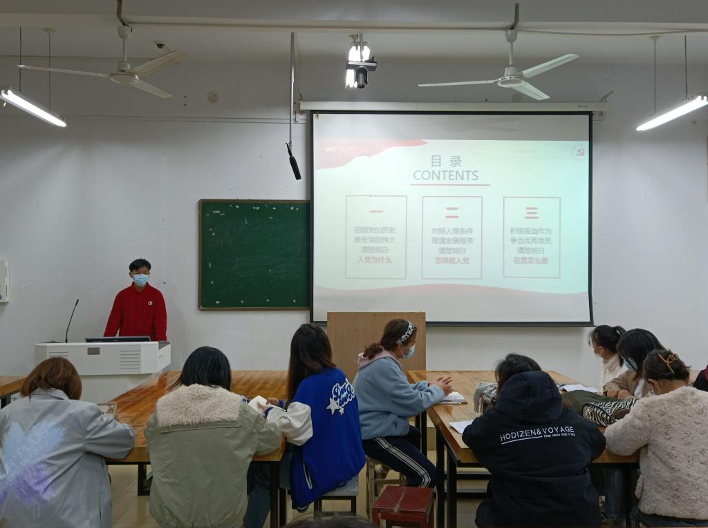 课堂上,陈家艺通过ppt与视频相结合的方式,介绍了中国共产党的光辉发展历程,让同学们从党的发展历程中感受党的伟大,陈家艺向同学们强调要以高度的思想觉悟和行动自觉去深化学习党史,毫不动摇地坚持中国共产党的领导。随后,张靖袆系统介绍了《中国共产党发展党员工作细则》,让同学们对照入党条件,理清发展顺序,进而更加清楚怎样才能入党。最后由张捷同学例举时代伟人,体会到优秀的中国共产党人是筑牢信仰之基、补足精神之钙的开拓者、创新者、奋斗者,更是作为新时代新青年老员工的学习榜样。同学们纷纷表示要坚持学习党史,常学常新,不断感悟,争做新时代的楷模并发挥党员先锋模范作用。