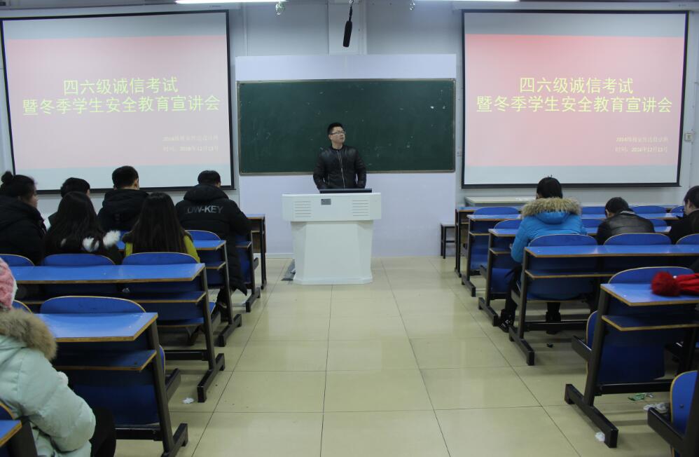 为树立优良的学风和校风、提高员工安全防范意识,12月13日晚,best365英国体育在线在艺术楼307室召开四六级诚信考试暨冬季员工安全教育宣讲会,公司14级视传班员工参加了此次会议,会议由公司辅导员张锐主持。