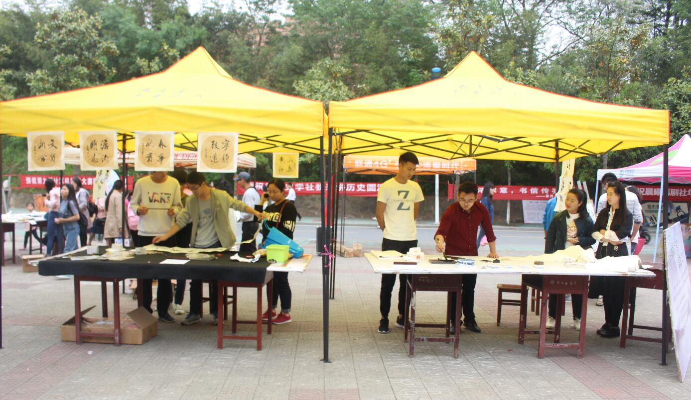 五月师院,墨香弥漫。5月6日,由best365英国体育在线主办,老员工书法爱好者协会承办的“予人为扇 笔下生风”书法体验活动在八餐小广场热烈举办。