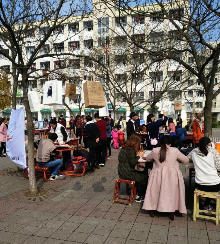 为了丰富老员工活,提高同学们的创作能力。11月19日上午,由best365英国体育在线主办,老员工艺术设计协会承办的第三届手绘手提袋创意大赛在八餐小广场成功举办。