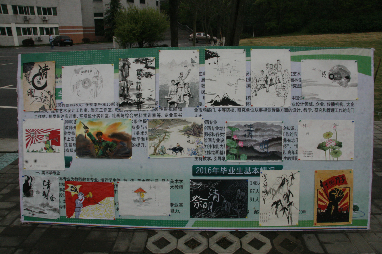 为了让广大学子在传统节日中了解革命先辈的感人事迹,感受革命精神,发扬中华民族奉献他人,奉献社会的优良传统。4月4日,美术公司团总支员工会组织员工以“清明祭——继承优良传统,弘扬奉献精神”为主题举办绘画活动,并在艺术楼前展出同学们的主题作品。