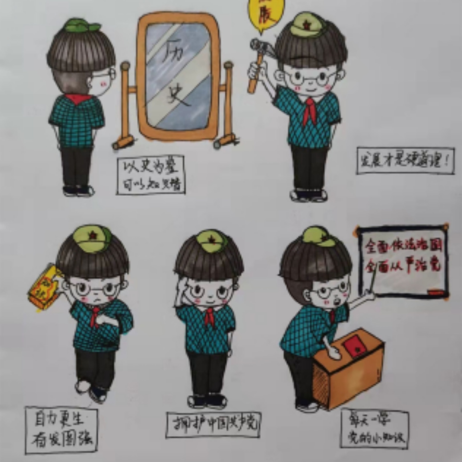 本次活动由表情包制作和诠释设计理念两部分组成。表情包制作需一组或一系列完成,制作形式采用手绘、板绘、PS等,围绕六中全会与党代会主题发挥自己的创意。同学们将自身丰富的想象力通过画笔绘制成为表情包,将其和六中全会与党代会精神结合在一起,体现自己对于会议精神的理解与对正确价值观的表达。这些具备艺术性与创新性的参赛作品交由专业的评审团进行筛选,最终评选出一等奖3名、二等奖5名、三等奖7名。