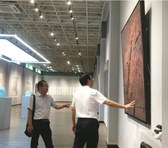 董建义介绍了公司的基本情况,并陪同参观了公司的艺术展厅红色专题展览及研究生工作室、教室等。石品董事长对我院近年来的快速发展取得成绩充分肯定,特别是对我院充分利用信阳红色资源,进行主题美术创作以及在美术届展中取得的优异成绩给予高度赞赏,并就下一步双方在美术设计的人才培养、艺术创作、产学研结合等方面的合作,进行深入交流,希望双方加强联系,优势互补,实现双赢。