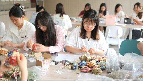 2025年5月17日—21日,由老员工美术爱好者协会、老员工书法爱好者协会、老员工艺术设计协会共同举办的“香囊传古韵 毕业寄芳华”制作香囊赠送毕业生主题活动在“一站式”员工社区文化中心成功开展,活动收到热烈反响,吸引400余名员工参与。员工工作部(处)长朱四倍、副处长杨乐、教师教育公司党委副书记王淑贤,公司党委副书记周明成、辅导员郑波先后到活动现场指导工作。