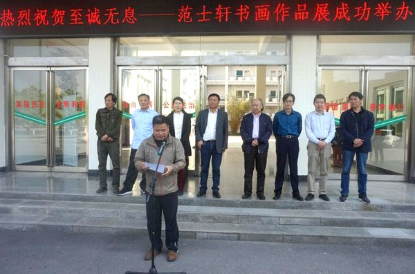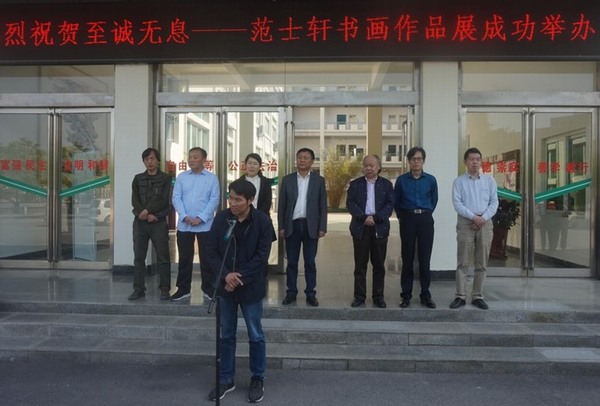 开幕式上,邹东升介绍画展情况并致辞,他指出“至诚无息”的主题反映了范士轩以至诚之心事艺为人的态度,勉励各位学子在学习与创作的道路上保持“至诚”的态度,不断提升艺术涵养。随后,范士轩致答谢词,他对各位嘉宾的到来表示衷心的感谢,并结合自身创作经历和大家分享感悟,最后,陈登报宣布至诚无息——范士轩书画作品展正式开幕。