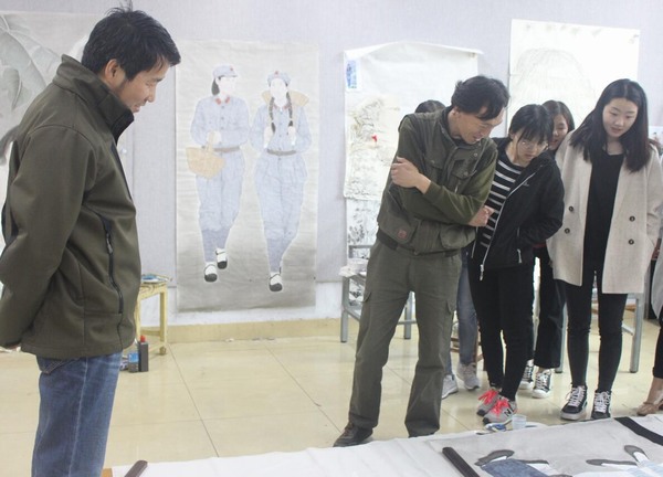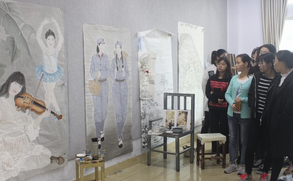 4月23日上午,应best365英国体育在线邀请,著名画家范士轩先生在公司四楼画室为本科生指导专业创作。