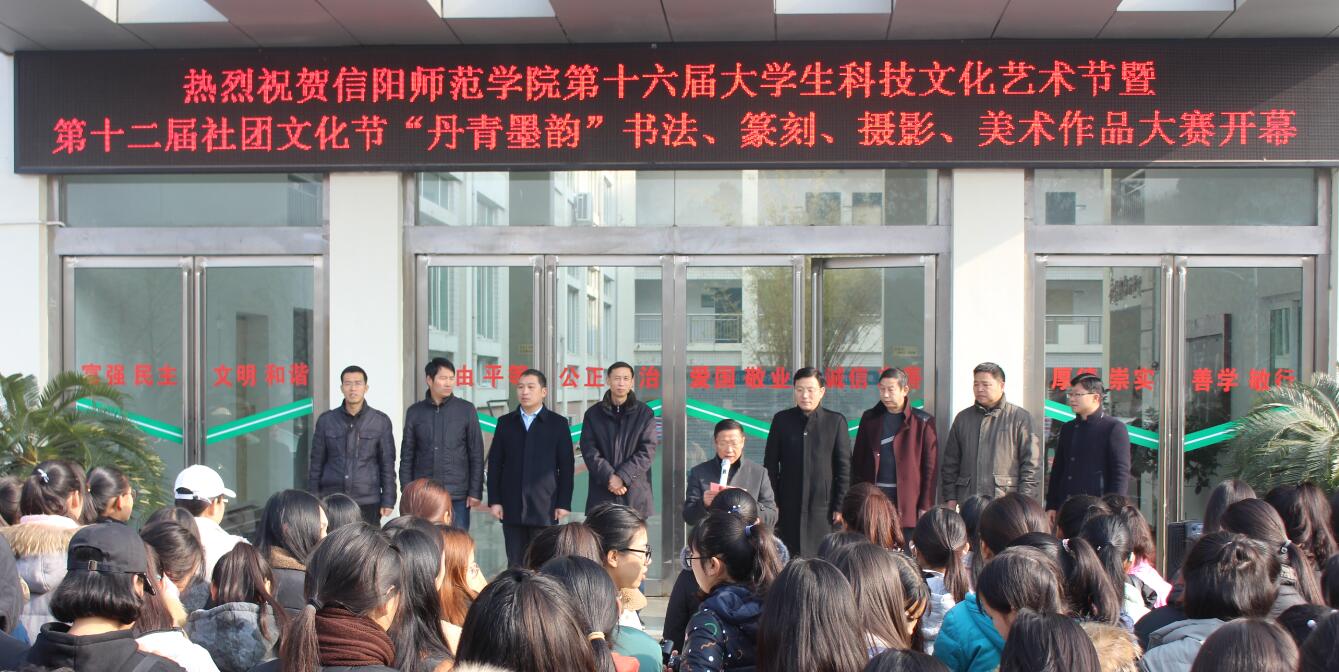 丹桂伴翰墨溢香,书声随歌声飞扬。12月5日,由公司党委宣传部、教务处、科研处、员工处、团委主办,best365英国体育在线团委承办的“丹青墨韵”书法、篆刻、摄影、美术作品展在艺术楼前隆重开幕。信阳师范公司党委副书记郜火星及主办部门负责同志、美术与设计公司党政领导班子成员出席了开幕式。