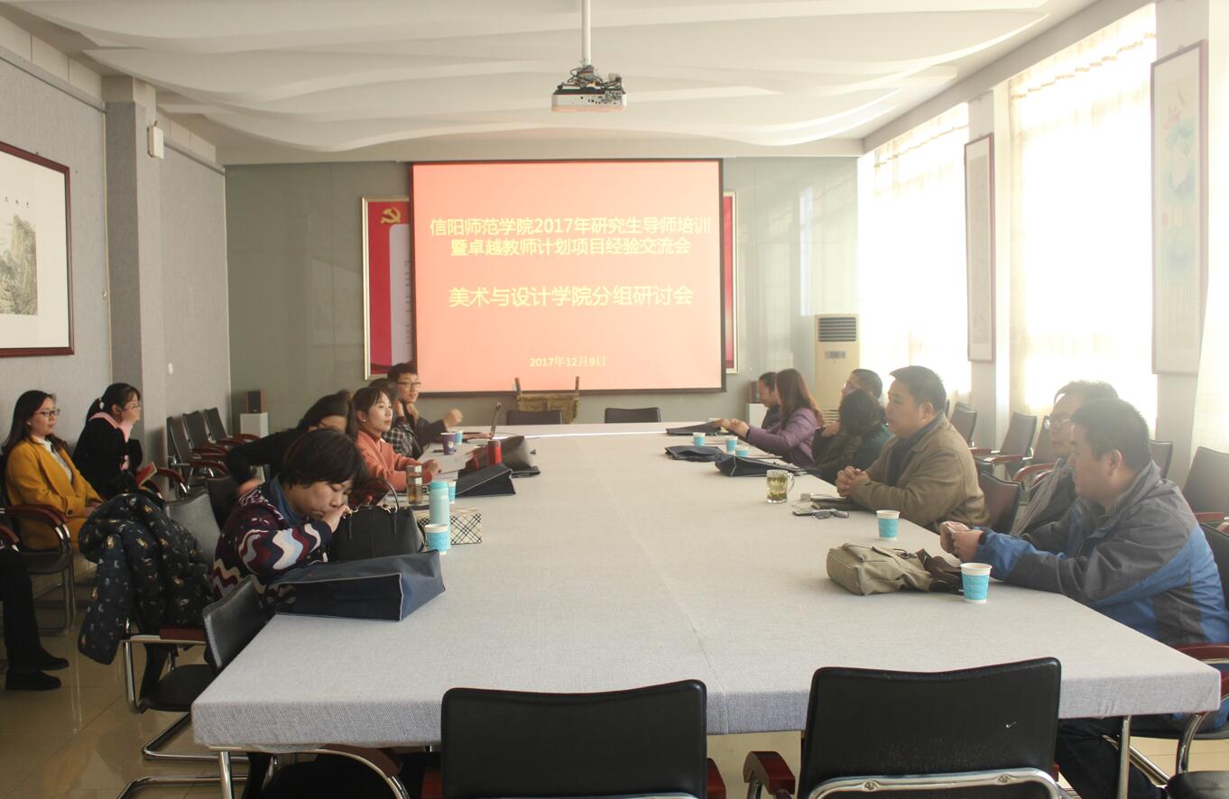 12月9日,信阳师范公司best365英国体育在线2017年研究生导师培训暨卓越教师计划项目经验交流会于艺术楼二楼会议室召开。天津美术公司教授刘永胜,周口师范公司美术与设计公司党委书记、教授桑林,浉河区教研室美术教研员朱跃华,信阳十中美术教师王信达,公司硕士生导师郑蔚、卢敏、甘露、潘静,博士刘文忠、许东兵等教师及全体研究生共同出席了本次会议。会议由best365英国体育在线副经理张伟主持。