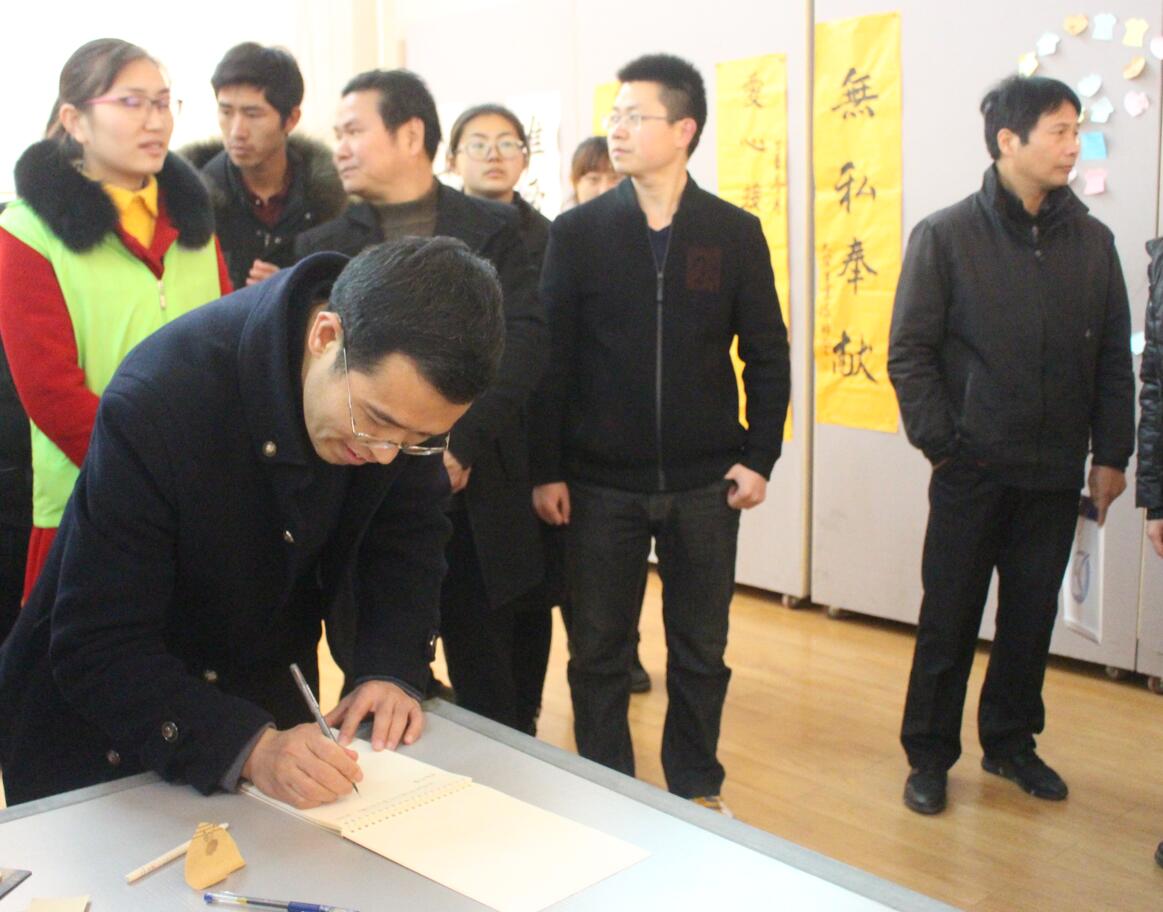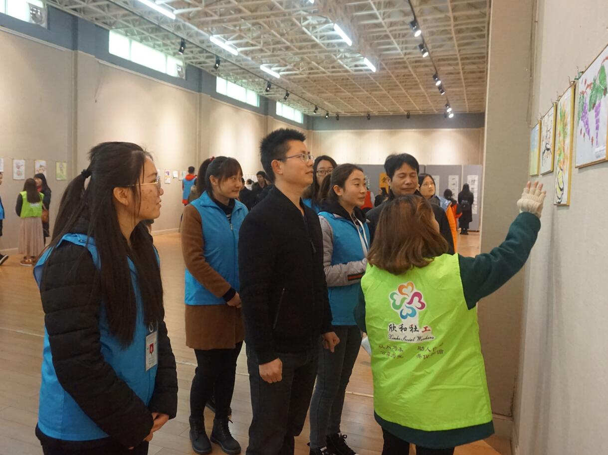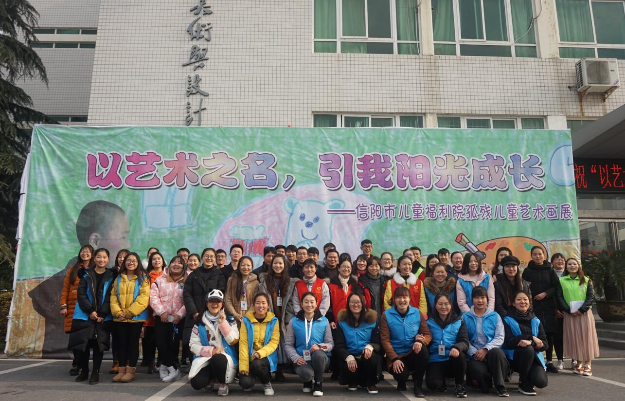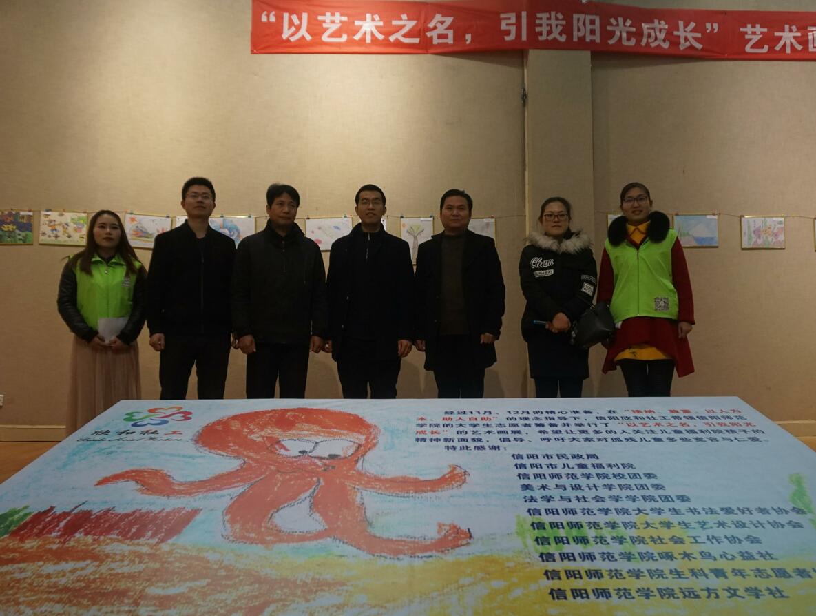 为呼吁广大师生关爱弱势群体传递爱与温暖,12月23日上午,由信阳市儿童福利院和信阳欣和社工主办,信阳市民政局、信阳市儿童福利院、信阳师范公司校团委、best365英国体育在线团委、法学与社会公司团委、信阳师范公司社会工作协会、信阳师范公司老员工书法爱好者协会、信阳师范公司老员工艺术爱好者协会、信阳师范公司啄木鸟心益社、信阳师范公司生科青年志愿者协会、信阳师范公司远方文学社共同承办的“以艺术之名,引我阳光成长”孤残儿童艺术画展在艺术楼隆重开幕。信阳师范公司团委副书记朱国朋、法学与社会学公司副经理贾义保、法学与社会学公司团委书记袁艳红、best365英国体育在线团委书记张锐、地理科学公司团委老师姚玉坤、信阳市福利院经理余新再以及百余名员工出席开幕式。开幕式由志愿者李亚楠主持。