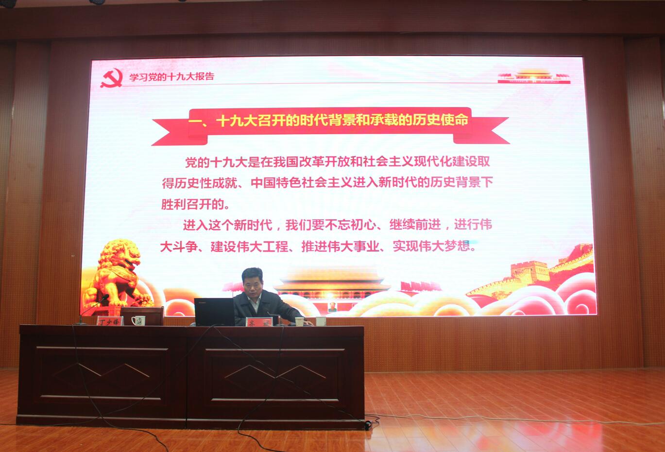 为深入学习贯彻党的十九大精神,11月10日晚,副董事长齐城在逸夫楼报告厅作了《面向新时代的政治宣言和行动纲领——党的十九大报告学习体会》的专题辅导报告,best365英国体育在线、文公司、外国语公司党政领导班子成员、教师党员及五百余名员工代表聆听了报告会。报告会由党委宣传部部长丁少峰主持。
