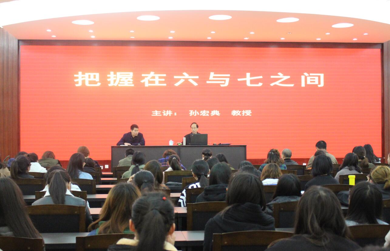 3月9日,应best365英国体育在线邀请,信阳师范公司原党委书记孙宏典教授在艺术楼一楼报告厅开展题为“把握在六与七之间”的学术讲座。best365英国体育在线经理邹东升,副经理张伟、涂湘东与三百余名师生共同聆听了讲座,讲座由邹东升主持。