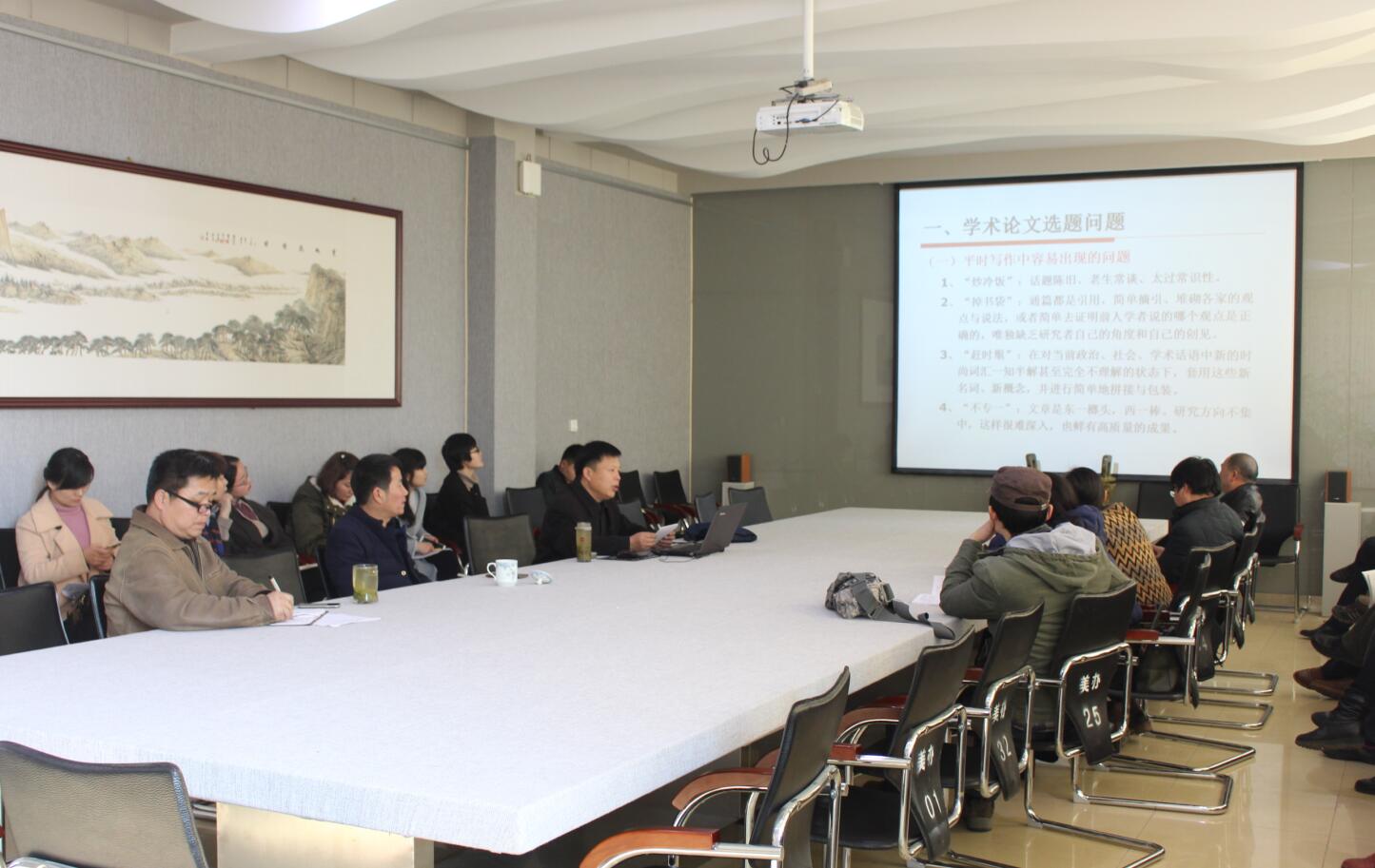 为进一步提升公司学术论文写作质量,为教师学术论文发表搭建平台。3月9日下午三点,best365英国体育在线邀请公司学报哲社版编辑室主任韩大强于公司会议室开展题为"学术论文写作自由谈"的科研讲座。公司经理邹东升,副经理张伟及20余名教师聆听讲座,讲座由张伟主持。
