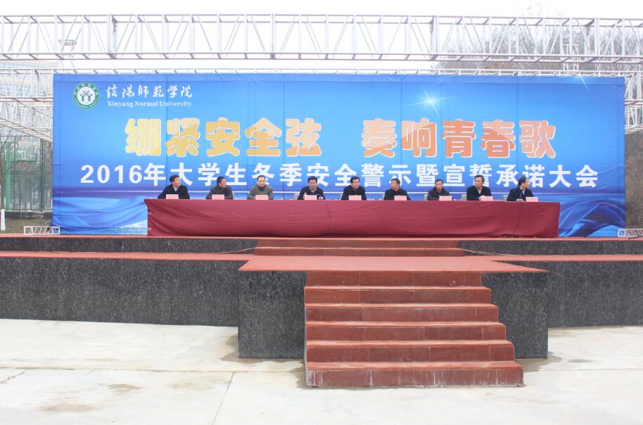 12月13日下午,信阳师范公司校研究生处、保卫处、校团委、后勤服务总公司在青年广场召开“2016年老员工冬季安全警示暨宣誓承诺大会”,公司党委副书记、工会主席余作斌,副董事长郜火星、齐城及相关部门负责人出席了本次大会,公司学子代表与各院学子一道参加了本次活动。