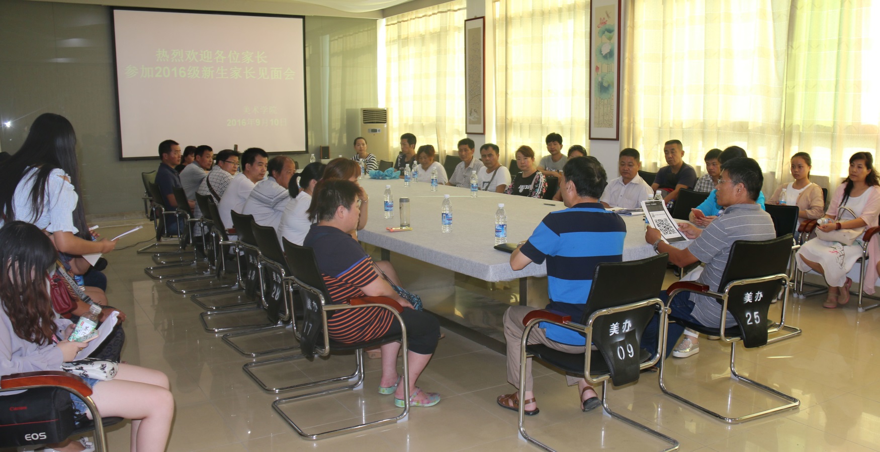 9月10日下午,公司在艺术楼二楼美术公司会议室召开2016级新生家长见面会。公司党委书记周子良、副书记李孝民、副经理张伟、教学秘书涂湘东、教研室主任高正及新生班主任施远、饶海虹参加会议,与新生家长就办学目标、教学管理等方面的问题进行交流。会议由周子良主持。