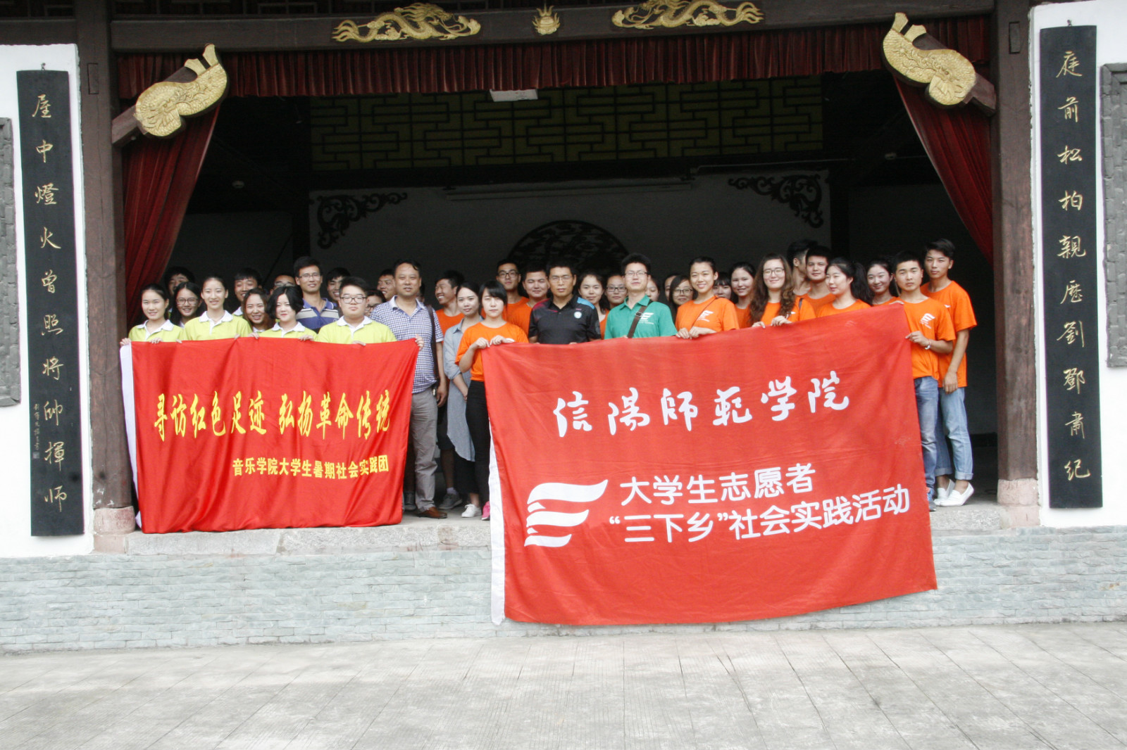 为贯彻党的群众路线,培养老员工艰苦奋斗的精神,热爱祖国的情操和乐于奉献的情怀,7月9日,在信阳师范公司美术公司党总支副书记李孝民、团总支张锐老师,音乐公司副书记副书记刘晓兵、团总支吕亚波老师、张河函老师的带领下,暑期社会实践“三下乡”活动的志愿者小分队来到了信阳市光山县“王大湾会议”遗址和光山县司马光中路白云巷内的邓颖超祖居。