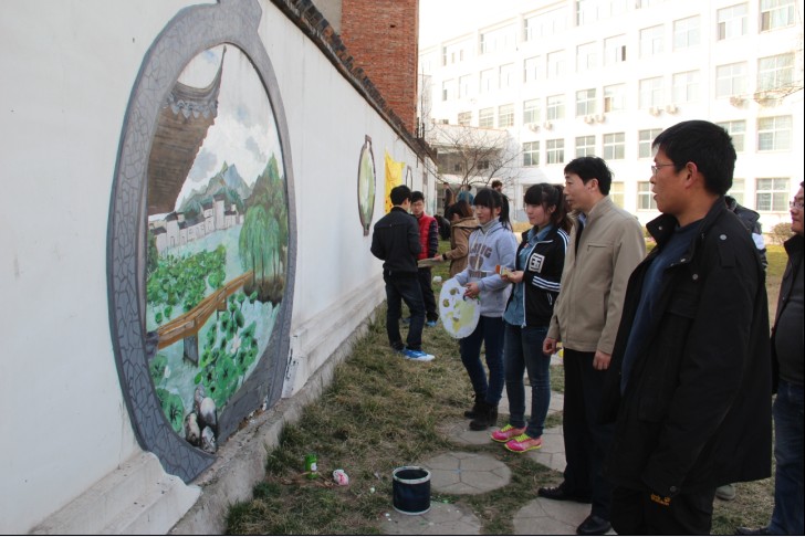 3月5日下午,利用自身专业优势,美术公司团总支、老员工艺术设计协会在全校范围内开展“践行雷锋精神、美化校园环境,建设和谐校园”活动。在逸夫楼荷塘美术公司党总支书记周子良、副书记李孝民亲临现场指挥绘画专业同学,用手中的画笔为已破损的墙绘重新勾勒出优美的线条,染上唯美的色彩,建成一面靓丽鲜艳的荷文化墙。此外美术公司还组织青年志愿者、员工党员维护清理全校的路灯杆和道路标示牌。
