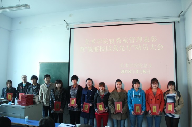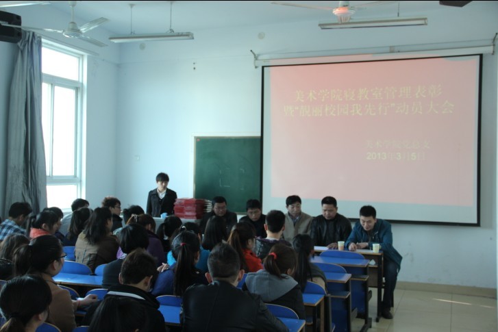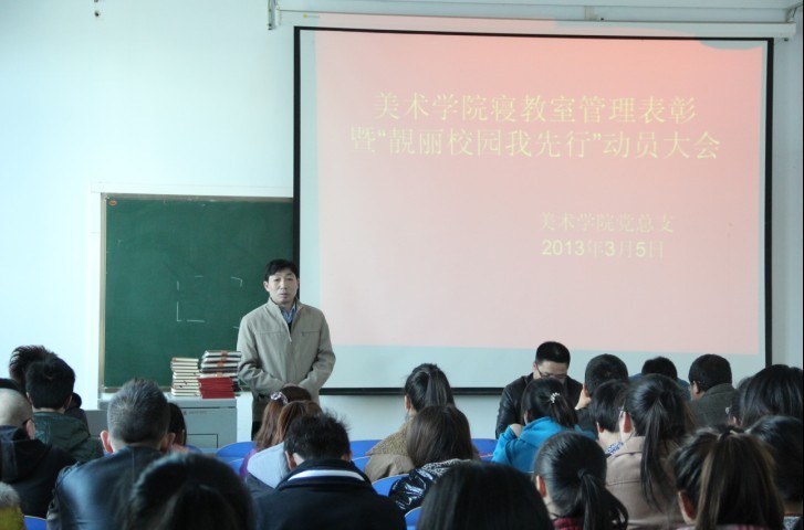 3月5日下午,美术公司寝教室管理表彰大会暨“学雷锋·靓丽校园我先行”动员大会在艺术楼306隆重举行,该公司党总支书记周子良、副经理张伟、党总支副书记李孝民等领导老师出席会议,获奖员工、员工干部、员工党员、员工代表共百余人参加了本次大会。