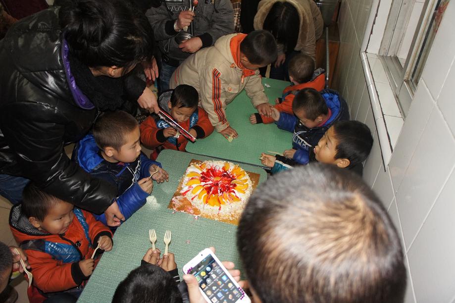 志愿者为孩子们分切蛋糕